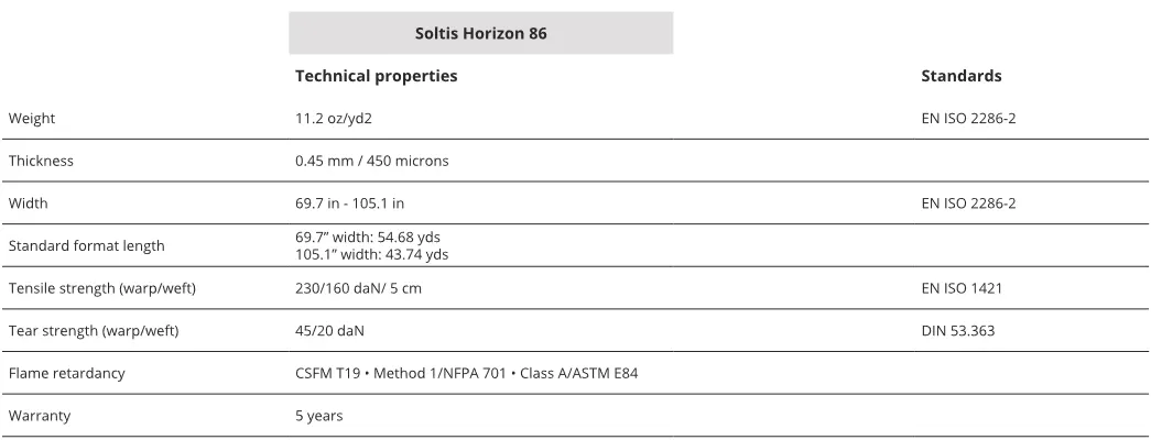 Thanks to Precontraint technology by Serge Ferrary, both Horizon 86 and Perform 92 have outstanding dimensional stability. They are environmentally friendly and recyclable. Soltis Horizon 86 is a 14% open mesh composite that offers the best outward visibility with a level of up to 28% natural light transmission.